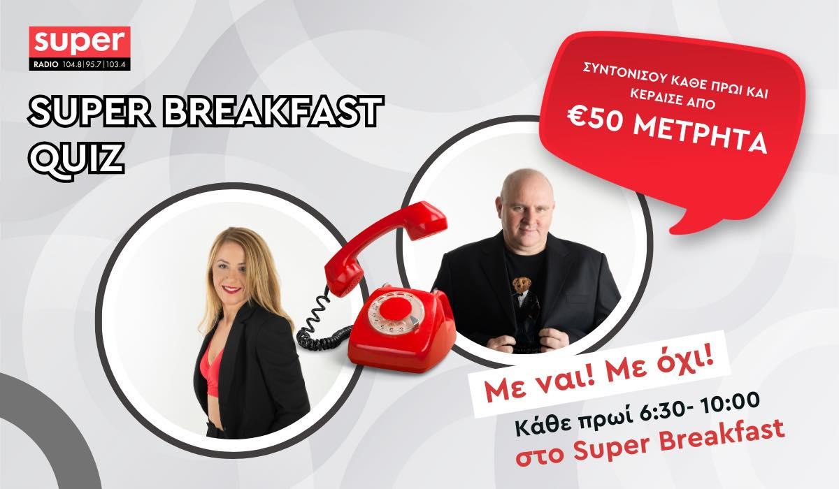 Το μόνο που έχετε να κάνετε είναι να συντονιστείτε κάθε πρωί από τις 6:30-10:00 στο Super Breakfast για να διεκδικήσετε €50!