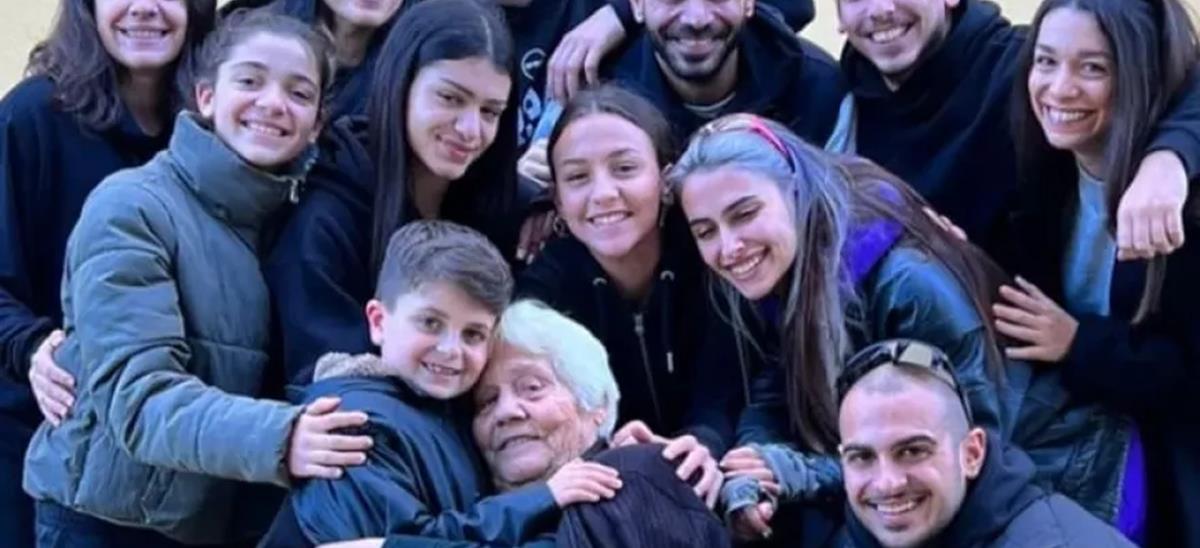 Σε αυτή, τη βλέπει κανείς να ποζάρει με όλα της τα εγγόνια, που φροντίζουν να είναι κοντά της, δείχνοντάς της την αγάπη και τη στήριξή τους στις δύσκολες στιγμές.
