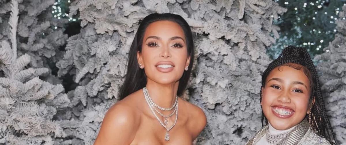 Η Κιμ Καρντάσιαν ποζάρει με τούλινη τουαλέτα με γούνινες λεπτομέρειες, την οποία επέλεξε για το χριστουγεννιάτικο πάρτι.