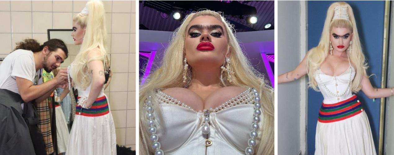 Συγκεκριμένα, φόρεσε ένα χειροποίητο bralette φτιαγμένο εξ’ ολοκλήρου από πέρλες σε λευκή απόχρωση από το #BraletteStudio το οποίο συνδύασε με ένα λευκό corset από #AgentProvocateur και μία midi φούστα.