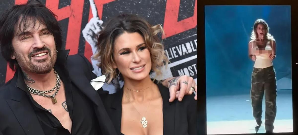 Ενώ βρίσκονταν στη σκηνή, ο Τόμι Λι προσκάλεσε πάνω τη σύζυγό του, Μπρίτανι Φέρλαν. Κι ενώ θα περίμενε κανείς κάποια αφιέρωση ή έστω μια δήλωση του σταρ, εκείνος της είπε να δείξει στο κοινό... το στήθος της.