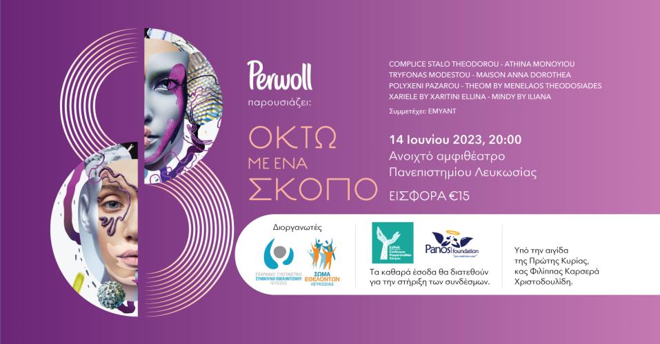 To Perwoll υπερήφανα παρουσιάζει το φιλανθρωπικό fashion show «Οκτώ με ένα σκοπό», το οποίο θα πραγματοποιηθεί για 7η συνεχή χρονιά στις 14 Ιουνίου 2023 και ώρα 20:00 στο ανοιχτό Αμφιθέατρο του Πανεπιστημίου Λευκωσίας.