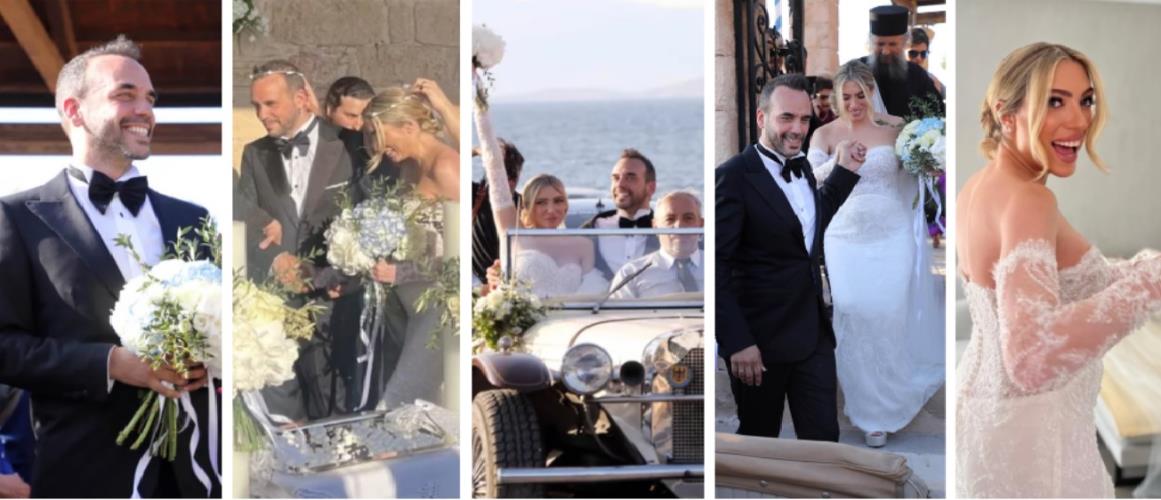 Η άφιξη της νύφης στην εκκλησία, ο χορός του Ησαΐα, η είσοδος του ζευγαριού στη δεξίωση, ο στολισμός, η μπομπονιέρα και οι διάσημοι καλέσμενοι - Το φωτογραφικό άλμπουμ από τον γάμο του Πάνου Μουζουράκη με τη Μαριλού Κόζαρη