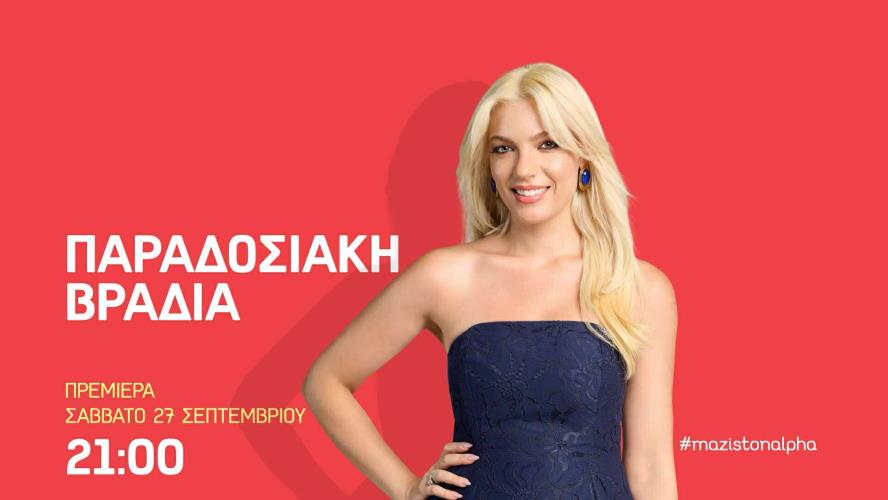 Μετά την επιτυχημένη χρονιά στον ALPHA Κύπρου, η «Παραδοσιακή Βραδιά» επιστρέφει το Σάββατο 27 Σεπτεμβρίου 2025 και κάθε Σάββατο στις 21.00, για να φέρει ξανά στο σπίτι μας κέφι, γλέντι και τη μαγεία της παράδοσης.