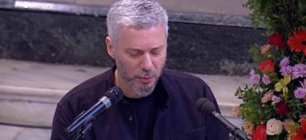Με εμφανή τη συγκίνηση στη φωνή, ο καλλιτέχνης αναφέρθηκε στον Διονύση Σαββόπουλο που αποχαιρετά σήμερα η Ελλάδα λέγοντας χαρακτηριστικά: «Σε αποχαιρετώ και εκ μέρους των παιδιών και μαθητών σου, των τραγουδοποιών της χώρας. Υπάρχουμε γιατί προϋπήρξες. Μας πήρες παιδάκια μέσα από το πικάπ του σπιτιού μας και μας άνοιξες την πόρτα σε ένα περιβόλι του τρελού, γεμάτο τραγούδια. Τρισυπόστατος, ένωσες τον συνθέτη, τον ποιητή και τον ερμηνευτή, ανεβάζοντας την ένωση αυτή σε θεόρατο ύψος. Μας έμαθες την αλφαβήτα της ιερής μας τέχνης. Παραμέρισες θαρραλέα εμπόδια και οδοφράγματα, δείχνοντας μας δρόμο στο άπειρο. Μας είπες “γράψτε τα τραγούδια σας και τραγουδήστε τα.