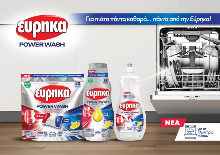 Με ιστορία δεκαετιών στην αστραφτερή καθαριότητα των πιάτων, η ΕΥΡΗΚΑ παρουσιάζει σήμερα τη νέα σειρά PowerWash για πλύσιμο στο πλυντήριο πιάτων