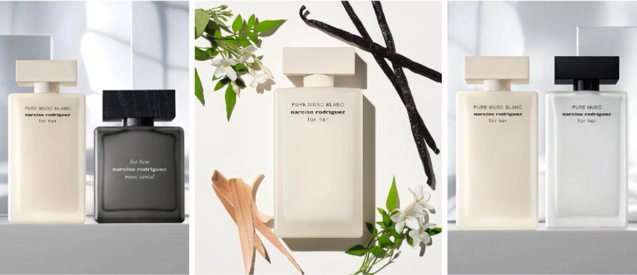 Ο οίκος narciso rodriguez parfums παρουσιάζει επίσης ένα νέο αρωματικό δίδυμο για γυναίκες και άνδρες: το for her PURE MUSC BLANC eau de parfum intense και το ιδανικό του συμπλήρωμα, το for him musc santal eau de parfum intense — ένα μαγνητικό άρωμα που αντιπαραβάλλει τη δροσερή φρεσκάδα του φασκόμηλου και του αρκεύθου με τη ζεστή, αισθησιακή αγκαλιά του σανταλόξυλου και του μόσχου.