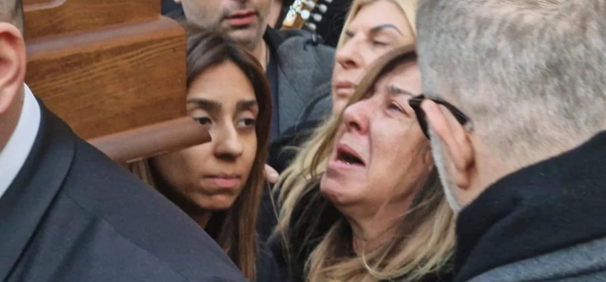Η σύζυγός του, Χριστίνα, εξερχόμενη από την εκκλησία υποβασταζόμενη από την κόρη της και ακούγοντας τα τραγούδια «λύγισε» και ξέσπασε σε κλάματα.