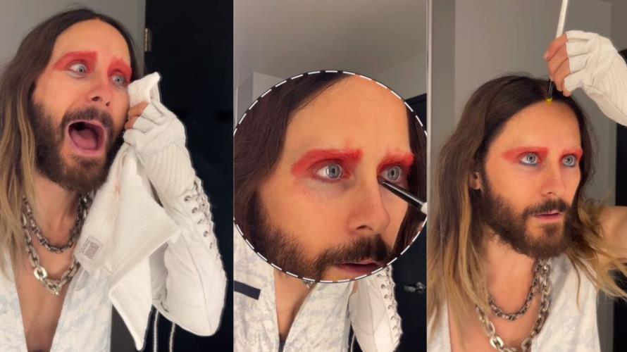 Σε βίντεο που αναρτά στον προσωπικό του λογαριασμό στο Instagram, ο Τζάρεντ Λέτο δείχνει στο κοινό του τη ρουτίνα του μακιγιάζ του, με το γνωστό του χιούμορ, κάνοντας γκριμάτσες στον καθρέφτη ή αυτοσαρκαστικά σχόλια.