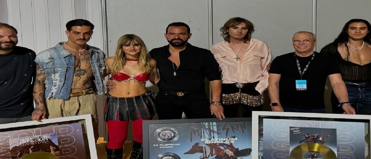 Οι Måneskin, το συγκρότημα – φαινόμενο της παγκόσμιας μουσικής σκηνής, τιμήθηκαν από την Panik Records για τις πολυπλατινένιες και χρυσές πωλήσεις τους στην Ελλάδα, κατά τη διάρκεια της συναυλίας τους στην Αθήνα.