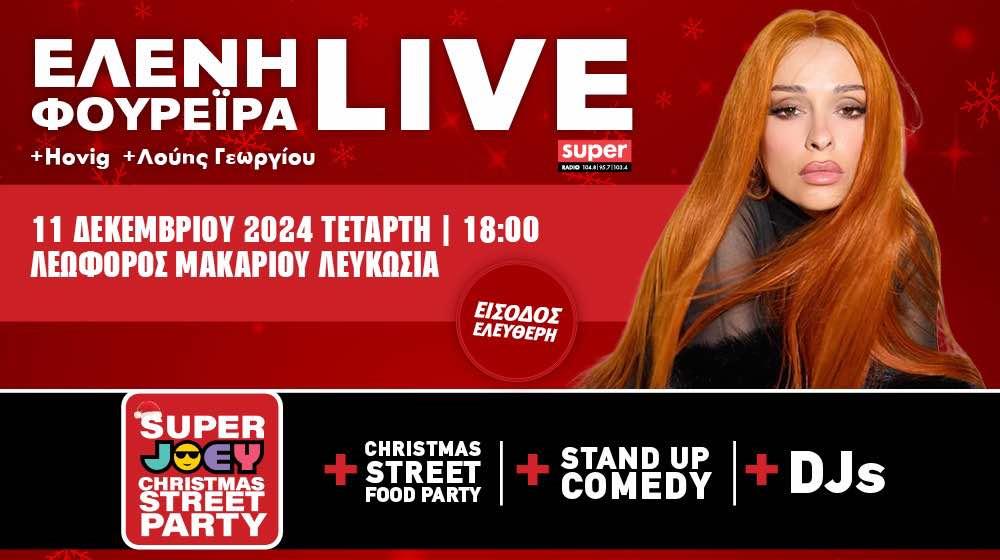 Το μεγαλύτερο Christmas Street Party, παρέα με την Ελένη Φουρέιρα, που έχει διοργανωθεί ποτέ θα λάβει χώρα στη Λεωφόρο Μακαρίου, σε συνεργασία με τον Δήμο Λευκωσίας, και υπόσχεται να χαρίσει μοναδικές στιγμές σε μικρούς και μεγάλους.